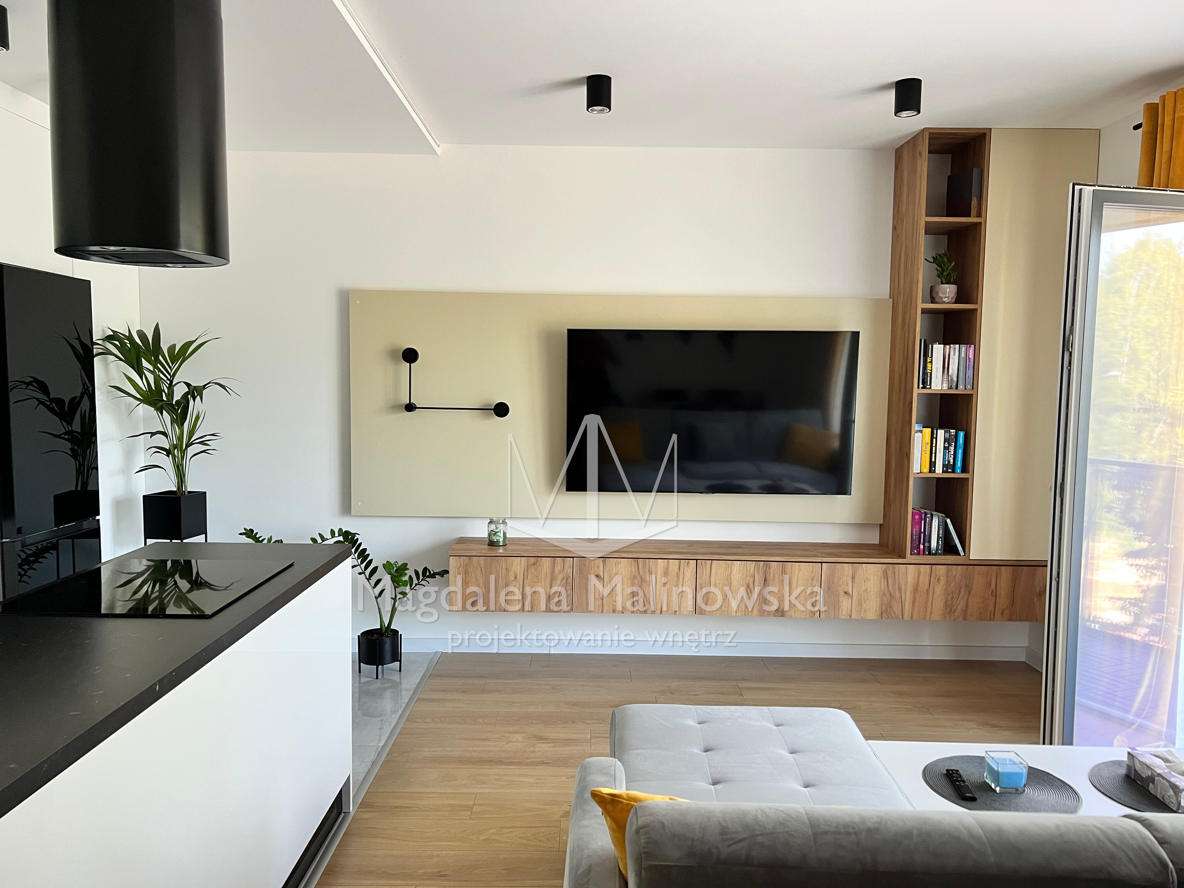Każdy element wnętrza został starannie dobrany, aby spełniać oczekiwania właściciela i tworzyć harmonijną całość. Efekt? Mieszkanie, które nie tylko cieszy oko, ale przede wszystkim jest miejscem, do którego chce się wracać.